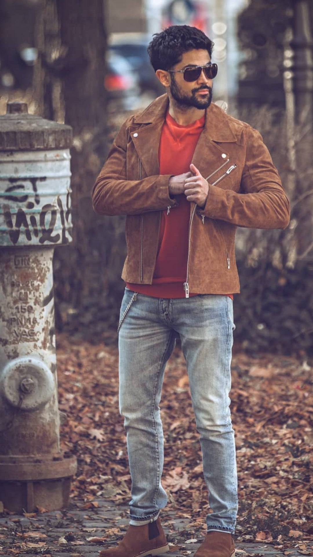 Maintain the trousers easy with a black shade to enhance the jacket. Biker jackets do have conspicuous zips on them, so maintain the equipment to a minimal to maintain the look litter free. You may go for a watch just like the black-strapped one right here.