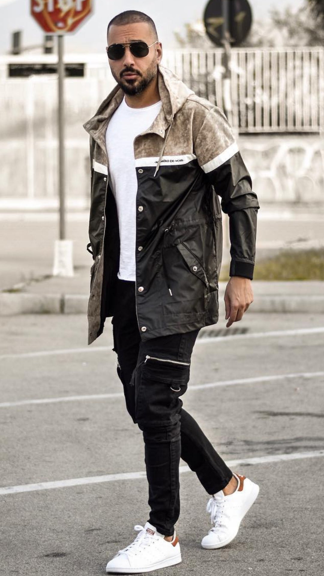 You may go for a white tee to your base, and a few darkish jeans to distinction with the lighter parts of the look. End this with a pair of white sneakers so as to add extra steadiness to the look.