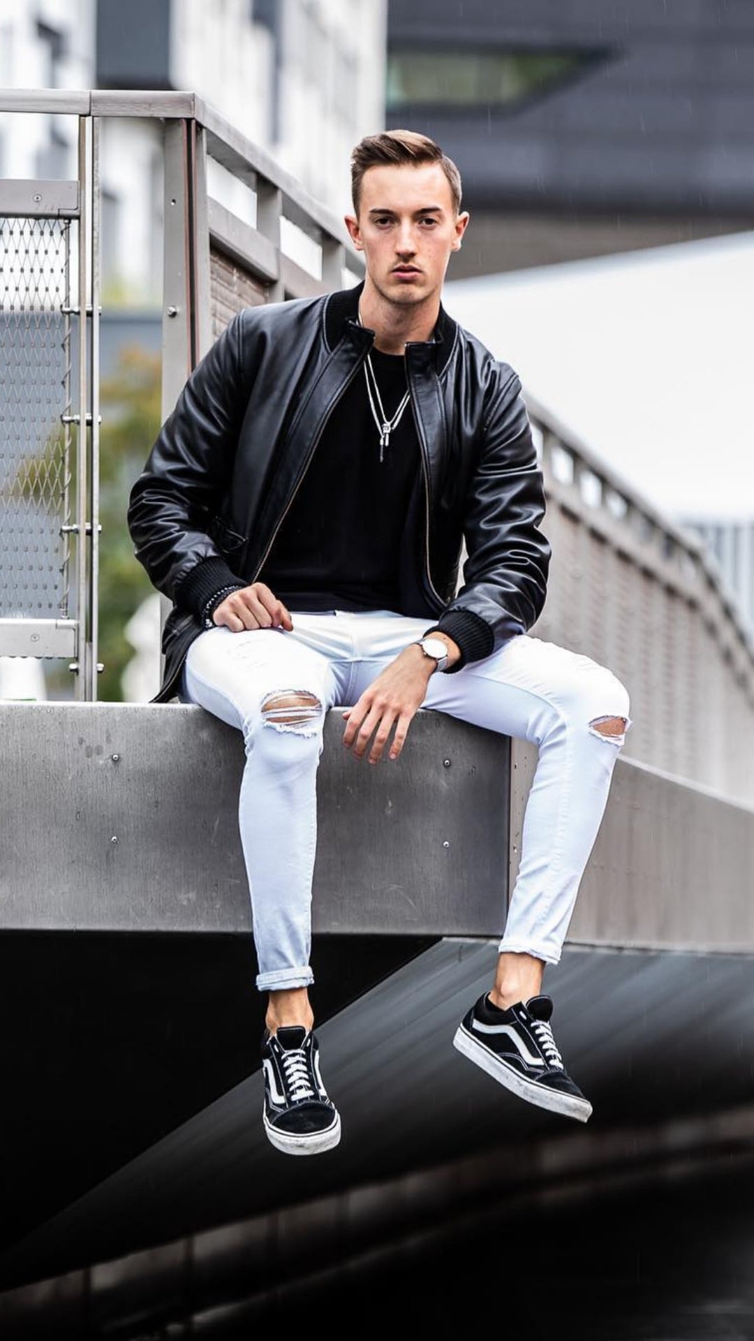 Maintain the trousers easy with a black shade to enhance the jacket. Biker jackets do have conspicuous zips on them, so maintain the equipment to a minimal to maintain the look litter free. You may go for a watch just like the black-strapped one right here.
